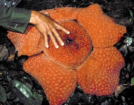 这种花后来被命名为大王花。它不像一般植物那样通过光合作用从阳光中吸取能量,而是必须寄生在葡萄藤之类的热带藤蔓植物上。大王花没有根、茎、叶,只有大大的几片花瓣;从长出花苞到开花大约需要9个月时间,然而花期仅一周,甚至短至三四天。因此,神秘的大王花仿佛传说中“长脚”的千年人参,很难有机会窥其貌,嗅其味。