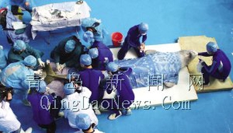 很快,市立医院的专家为小乐研究了手术方案,经向日本一著名兽医专家请教,结果手术方案完全一致。昨天上午,徐国士等三名医护人员确定为小乐进行尾鳍切除缝合手术,这是国内首次为大白鲸做手术。