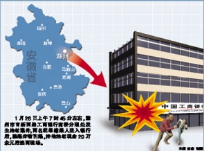 安徽滁州发生银行劫案 两嫌犯炸银行劫20万