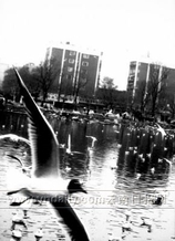 记者一看,这只海鸥的头部全是黑色的,就连嘴都是黑的,它正飞舞在空中,而在它下面的大观河里,都是白头的海鸥群,黑头海鸥因此显得特别显眼,但除了黑头外,它其他的体态特征与红嘴鸥没有差别。照片的背景是环西桥附近的大观河。记者也没有见过这种红嘴鸥,难道它是珍稀的黑嘴鸥?