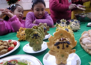 2月1日,在北京朝阳区八里庄西里社区举行的“盼奥运、迎新春居民厨艺比赛”上,社区居民制作的福娃造型年糕格外引人注目。为迎接新春、倡导奥运文化,该社区组织居民以奥运为主题制作传统年夜饭,受到广大社区居民的热烈响应。