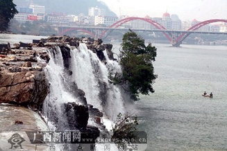 广西新闻网-南国今报柳州讯(记者何继权)2台、4台、6台……12台,抽水泵越开越多,瀑布的水量也越来越大,景色也愈显壮观。昨日上午,柳州市蟠龙山人工瀑布试水成功,为近日的正式开放提供了保障。