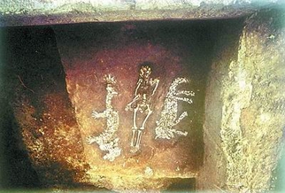 ▲1987年在河南省濮阳市西水坡发现的仰韶文化蚌塑龙虎遗迹,龙身长1.78米,高0.67米,昂首曲颈躬身,长尾,龙姿遒劲,爪麟逼真,几欲飞腾。经碳14测定(树轮校正)距今大约6400年,被国内考古专家誉为“中华第一龙”,对于研究中国文明起源有着重要的意义。1987年正值农历龙年,这一重大考古发现立即轰动了学术界和新闻界,并引起海外的广泛关注。(朱培娟)