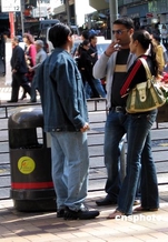 资料图:香港《禁烟条例》在2007年第一天正式实施,所有室内工作间正式被列作禁烟范围。图为吸烟者在垃圾箱旁吸烟。中新社发 王丽南 摄