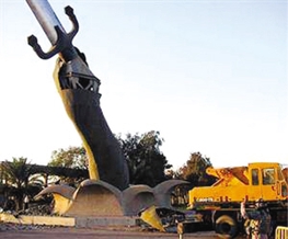 据美国《新闻周刊》日前报道,位于伊拉克首都巴格达中心的“胜利之手”雕塑,是萨达姆统治时代的象征之一。然而从上周起,伊拉克政府终于决定拆除这座巨大的青铜塑像,并已经拆下了若干青铜块。伊拉克记忆基金会执行长哈迪米闻讯后深表震惊,该组织已向伊拉克政府和联合国教科文组织递交抗议信,希望能挽救这座以萨达姆双拳为模型建造的“胜利之手”雕塑。