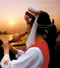 葫芦丝是流行在傣、彝、阿昌等民族中的乐器,又称葫芦萧。葫芦丝虽然是用葫芦做的,但它的发音却是由铜质的簧片经过气流的振动所产生的,音域相对比较窄,但音色优美、亲切,善于表达温柔、细腻的感情,给人以含蓄朦胧的美感。因为它的发音如丝绸抖动般的飘逸、轻柔,所以被称为葫芦丝。