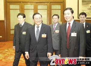 9日下午,中共中央政治局常委、中央政法委书记、全国人大代表罗干来到山西厅,与出席十届全国人大五次会议的山西代表一起审议政府工作报告、物权法和企业所得税法两部法律草案,听取代表的意见和建议。
