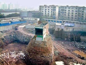 经核实,这是重庆市的住宅小区“正升百老汇”楼盘工地。该楼盘的代理销售商伟联地产销售公司的售楼小姐称,这是“百老汇”的二期工程,一期已销售完毕,那栋小楼是“钉子户”不肯搬迁留下来的。二期工程正在挖地基,情形就如人们在图片中看到的那样。