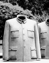 那是1913年(一说1915年),孙中山拿着日本军校的士官校服到上海“荣昌祥”西服公司,找到老板王财运(一说“王才运”),要求制作一件像西服那样精神,但不必戴领带的中式正装。具体要求是:正面5粒纽扣,象征当时“中华民国”“五权分立”;4个口袋代表“礼义廉耻”;袖管上要3个纽扣,代表“三民主义”。