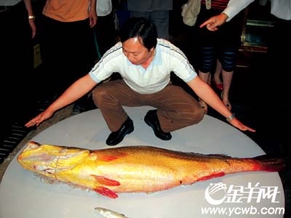 上图:一米多长的金钱鳘鱼全身呈金黄色