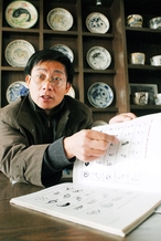 很多收藏鱼盘的人是为了升值,但也有人是发自心底地喜爱它,安立华就是其中之一。1983年,安立华偶然在朋友家中看到了几十件鱼盘,那些硕大而夸张的鱼纹,熟练而肯定的用笔深深震撼了他,无意之中,鱼盘就这样闯入他的生活。因为涉足晚,周围的乡村早被一批又一批的鱼盘爱好者光顾多少遍了。几年下来,他只从朋友处得到两三件极其普通的晚期产品。直到1986年秋,在随画家们到博山源泉写生时,他从一位年逾古稀的老太太手中,花5元钱买到一件民国时期的精品老鱼盘,好运就这么开始了……为搜集鱼盘,每逢节假日安立华都要走农家、逛市场,他自封“打鱼的人”,在“踏破铁鞋无觅处”的失望与“得来全不费功夫”的惊喜中,反复体验着。寻之弥艰,爱之弥深,在别人把鱼盘买进卖出之时,他却将自己多年收藏的几百件鱼盘归整总结,为它们著书立说,为的就是让世人真正认识到鱼盘的魅力,使更多专家关注、研究博山鱼盘,进而开启淄博民间文化艺术的宝库。对鱼盘,他仿佛有一种责任感,这也促进了他后来对淄博其他民间陶瓷的收藏和关注。