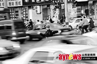 11时30分左右,东西走向的二营盘街和南北走向的并州路上,车流量都开始增加,尤其是由东向西行驶的车辆数量大幅增加。一路上,许多交警都在密切注视、并引导来往车辆通行。快到中午12时,车流达到最高峰。二营盘街上,红灯亮起时,后面等待通行的车辆往往要排起将近100米的长队。并州路的红灯前,最多时竟有三四十辆车排起百米以上的长蛇阵。