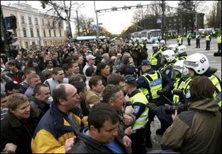 爱沙尼亚示威人群与警方发生冲突