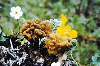 子实体较小至中等大,呈不明显的马鞍形,稍平坦,微皱,黄褐色。在针叶林中地