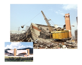 本报讯随着巨大悠锤的一次次撞击,建于1989年的大连市体育馆昨日彻底成为一堆瓦砾。这座承载了无数大连市民历史情感的“标志性”建筑,就此作古。