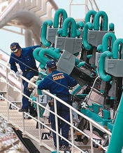 这一名为“风神雷神2号”游乐项目的过山车轨道全长1050米,高约40米,车速最高可达每小时75公里。事故是在过山车整个行驶过程的后半段发生的。当时由6节车厢组成的过山车坐满了24名游客,其中第二节车厢内坐椅发生倾斜,擦碰到护栏上,导致这一车厢内的4名游客中1人死亡、两人重伤。