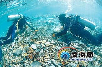 今年,考古人员再次来到该遗址,进行第一次抢救性挖掘,他们先在遗址上确定一个范围,以此进行测量绘图和摄影,遗址表面的记录工作完成后,考古人员首先要用人工的方法,清理遗址表面大量的碎瓷片和堆积物。然后再用高压水枪将珊瑚沙打松、冲开,之后用抽沙机将挖开的沙一点点抽到别处。成堆的完整文物渐渐露出了它动人的面目,详细的记录工作完成后,上万件文物才小心翼翼地离开了它沉睡了几百年的海底。