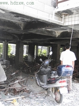 事故发生已经半年了,在“福州春天”小区10号楼,起火的停车场废墟还没清理,随处可见被烧得只剩下“骨架”的电摩和摩托,烧成灰烬的木头、砖头等物也还散落地上。据物业介绍,为配合消防调查,他们一直没有清理。