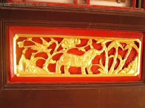 重修时用金箔装饰的木雕