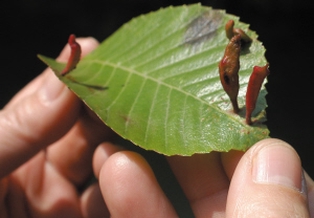 虫瘿大多发生在芽和新叶等生长活跃的分生组织上。以小瘿蜂为例吧,当雌性瘿蜂把卵产入紫弹树的叶子上后,一开始,紫弹树并没什么变化。只有当幼虫孵化,紫弹树才长出虫瘿,这是因为它受到瘿蜂幼虫分泌物的刺激了。