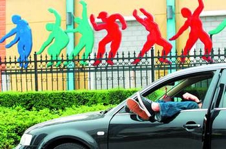 昨日下午,在湘江大道,一名驾驶员将脚架在车窗外休息。小刘军 摄