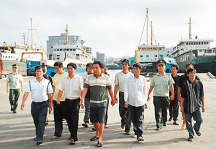 5月10日,我18名船员从马来西亚乘飞机安全回到广州。5月11日7时40分,18名渔民乘船抵达海口新港码头,海南边防总队派专车将他们接回琼海。