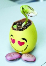 路过的秦女士说:“我一个星期前买了一粒,刚露出头来,豆瓣上真的有字呢!”
