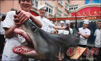 青岛渔民捕获大白鲨 美食城花1.6万买走(图)