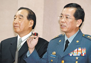 “立委”严辞抨击美国西点军校生在台性丑闻案,国防部新任副部长林镇夷(左)答询没搞清楚状况,先是说“美国学生我方无法处理”,经人次室次长黄奕炳提醒,才改口说“如有犯法,审判权当然在我方。”
