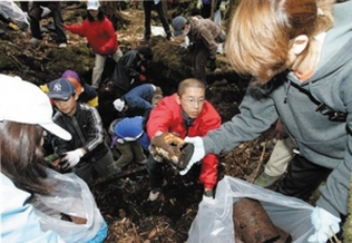 在最近一次清理行动中,环保志愿者们共挖掘出垃圾约3吨。志愿者们最初仅看到一些油漆罐和塑料袋。但是,当他们扫开落叶和表层泥土后,眼前的景象令他们感到“触目惊心”。一些垃圾已经埋入地下约二三十年,其中包括铁皮屋顶、办公桌椅、垃圾桶及其他种种物品。