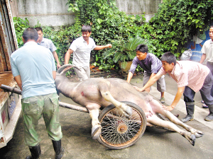 500斤耕牛晕车发疯撞倒老妪狂奔20里冲进幼儿园被击毙