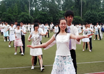 昨(17)日,由教育部推广的校园集体舞首次在成都亮相,数百名学生家长及社区代表观看了成都市实验中学500名学生集体表演的“校园华尔兹”。从排练到表演,该校用了约一周时间,距教育部下发《教育部关于推广〈第一套全国中小学校园集体舞〉的通知》正好17天。
