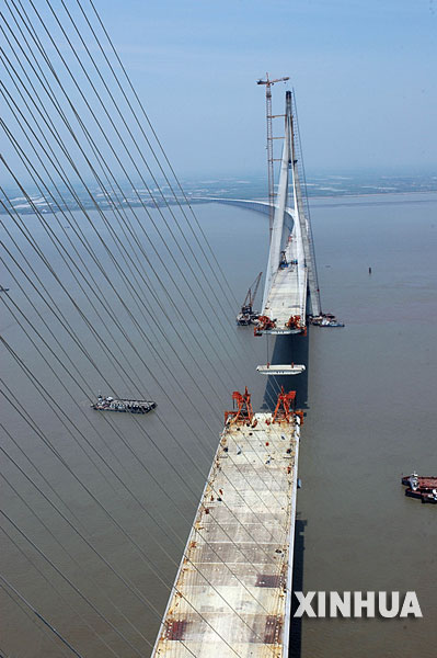 备受瞩目的苏通长江公路大桥将完成千米跨越,今日计划实现主桥合龙。