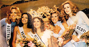 1976年获得威尔士小姐的诗安(右二)参加全球小姐选美。