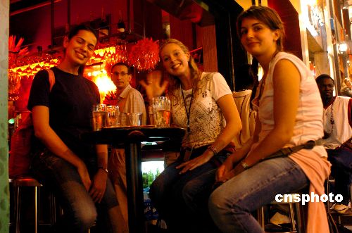 酒吧云集的香港兰桂坊堪称为居港工作的外国人的乐园﹐每到周末或节假日﹐他们借此饮酒聊天感受时代脉搏。图为年轻人在兰桂坊一间酒吧享受生活。中新社发 王丽南 摄