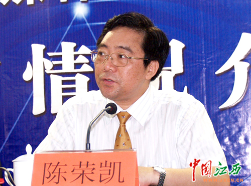 6月19日,第四届中国网络媒体海峡西岸行采访团一行来到宁德市采访,宁德举行了情况介绍会,市委书记陈荣凯、代市长陈家东出席。(中国江西新闻网记者 杨冗晟 摄)
