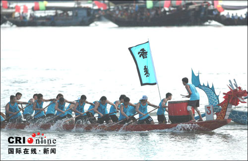 国际在线专稿(驻广西记者 张江元 ):第四届港城中越(民间)龙舟邀请赛19日14:30在广西防城港市西湾跨海大桥海域举行,有来自香港、越南及广西区内的12支队伍参赛。吸引观众近四万人。