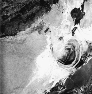罗布泊干涸湖盆的著名“大耳朵”卫星影像图。资料照片