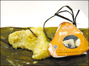 香糯可口的粽子一咬之下却有硬物硌牙,吐出一看居然是枚生锈的铁钉!家住清溪的李小姐昨日午餐时就遇到这样的败兴事。据悉,这款名为“顺味”的散装粽子产地是佛山。