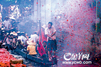 “50”、“100”、“300”,此伏彼起,龙船靠岸后,龙舟健儿和村里的老人、孩子在祠堂里吃过传统的龙舟饭,就在祠堂前举行龙船圣水兜(装黄皮叶、舀珠溪“圣水”以洗涤船身)、禾兜(盛载采青禾谷)的投标拍卖。村中父老潘伯说,200年来,年年如此。