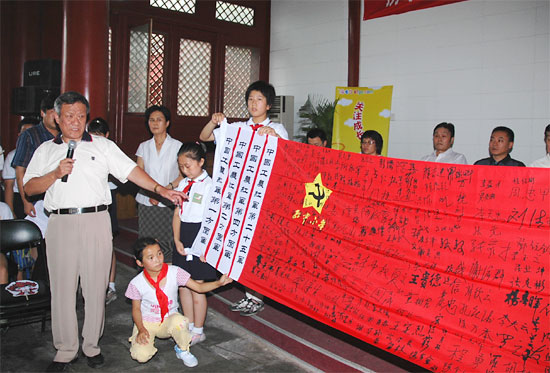 红军小学发起人、贺龙基金会主席贺晓明、国务院发展研究中心原副主任鲁志强、团中央网络影视中心副主任、中国青少年网络协会秘书长郝向宏出席了班会并讲话。