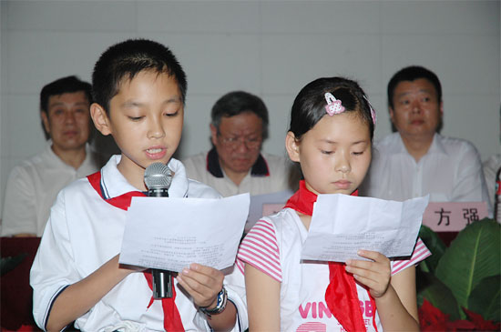 遵义市红军小学与北京府学胡同小学的学生代表向全国青少年发出倡议