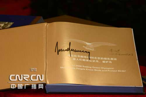 国际奥委会终身名誉主席萨马兰奇为《世界鸟类邮票鉴赏大图典》签名