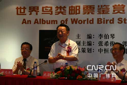 中广网北京6月25日消息(记者邱丽娜)为了迎接北京2008年的绿色奥运,由李伯琴、郭丽珠、张希俊等编著的、人民邮电出版社出版的《世界鸟类邮票鉴赏大图典》于2007年6月24日举行了首发式。出席首发式的领导和来宾有:国家环保前局长、中华环保基金会理事长曲格平、国家林业局副局长赵学明、中华全国集邮联合会副会长盛名环、潭小为、中国科学院院士、中国鸟类学会名誉理事长郑光美教授等。
