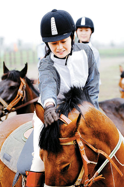 近日,宁夏女子骑警队在石嘴山市正式成立,该骑警队由15名青春靓丽的女警和20匹矫健的警马组成,将担负节庆治安巡逻、文体礼仪表演、礼仪警卫等任务。该骑警队筹建3个月来,每天都要进行跨步、小碎步、跨障碍等专业课目训练,队员们用汗水和耐心与爱马建立起了深厚的感情。图为队员张贝在安抚警马“黄玫瑰”。新华社记者李紫恒摄