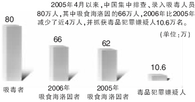 第二,吸食海洛因的人员明显减少。巩固3年以上未复吸的有4万多人,新滋生吸食海洛因人员的增长幅度已经由高发期的30%下降到2006年的5.8%。