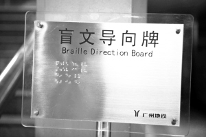 此次在一二号线加装的盲文导向牌共分4类:站厅出口导向牌;边门求助按钮导向牌;付费区内通往站台楼梯扶手处的提示行驶方向的导向牌;以及配合前三项的求助按钮(辅助设施)。其中一号线全线(公园前站除外)全部安装了站厅出口导向牌;新港东、琶洲、磨碟沙和公园前除外的二号线安装了边门求助按钮导向牌,和付费区内通往站台楼梯扶手处的提示行驶方向的导向牌。