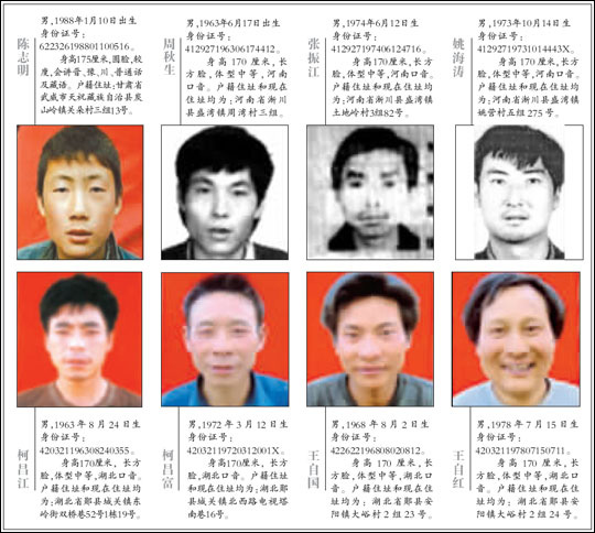 根据住址显示,此次所通缉8人中,有4人来自湖北,3人来自河南,1人来自甘肃。