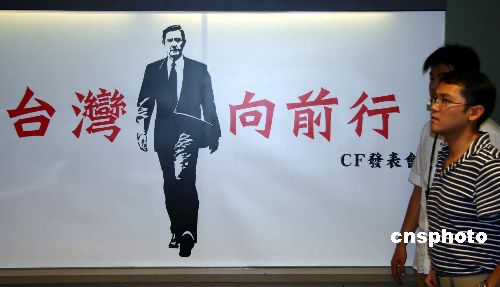六月二十五日,马英九竞选工作室公布“马萧配”竞选团队第一个竞选文宣电视广告片。广告片的画面素淡简捷,以空白画面为背景,身穿西装的马英九由远处稳健地走来是唯一的影像。旁白是马英九以普通话、闽南话、客家话分别讲同样一段话。中新社发 耿军 摄