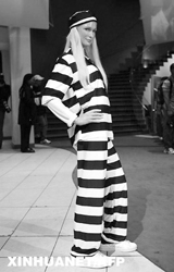 穿囚服的希尔顿蜡像。